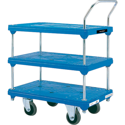 花岡車輛(株) PH-BT3-AC ダンディ プラスチック台車 ダンディPシリーズ タイプPH 3段テーブル片ハンドル式 抗ウイルスハンドル仕様 W805×D510