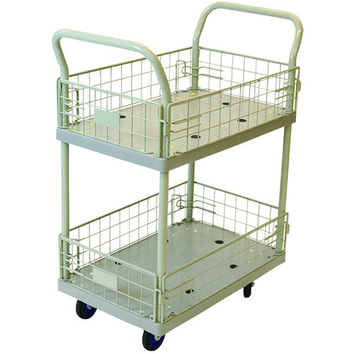 浅香工業(株) 品番:183608 金象 プラキャリー2段式金網付小フットブレーキ 特長ハンドル固定式樹脂製台車2段式フットブレーキ付金網は脱着式用途不定形、不安定物の運搬、一時保管に、安全で効率的な作業をお手伝い商品スペック仕様・規格樹脂製台車2段式金網付フットブレーキ付金網の高さ 160mm金網外寸法 全長680×全幅440×全高160mm使用時外寸法 全長805×全幅490×全高990m