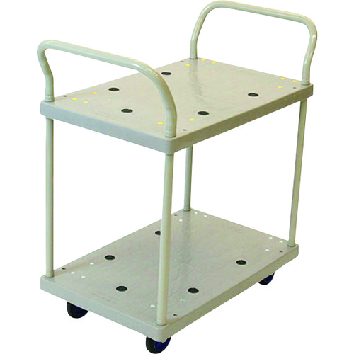 浅香工業(株) 品番:183424 金象 プラキャリーラック 2段式 小 特長ハンドル固定式樹脂製台車2段式用途工場、倉庫、店舗での運搬作業使用備品に商品スペック仕様・規格樹脂製台車2段式使用時外寸法 全長785×全幅455×全高855mm車輪径 100mm積載重量 150kg積載面高さ 145mm(下段) 635mm(上段)積載面寸法 全長710×全幅455mm(ハンドル部含む)材質台座:樹