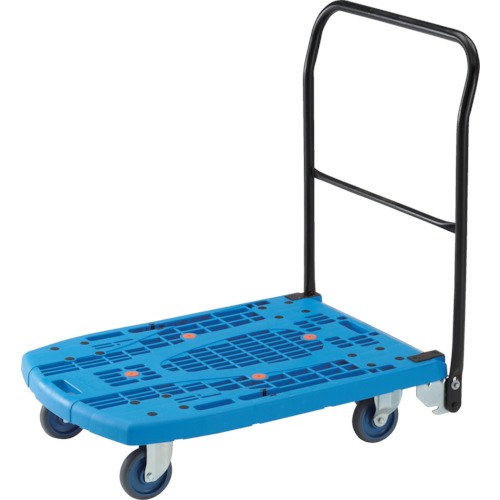 トラスコ中山(株) 品番:MPK-906FJ-B TRUSCO 【売切り廃番】カルティオビッグフラット 回転 900X600 4輪自在 青 特長ハンドルは回転してキャスター側にコンパクトに収納できます。平台車と手押し台車の1台2役で使用できます。エアーキャスターの採用により取り回しが軽く操作性・静音性に優れています。用途運送業、工場内の作業。物流倉庫内での運搬作業。商品スペック仕様・規格完成品