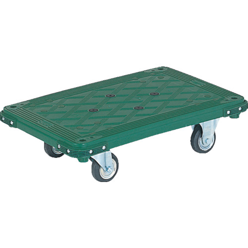 トラスコ中山(株) 品番:MP-800N-2 TRUSCO MP樹脂製平台車 820X555 特長平台車の荷台寸法より大きい商品が運べます。用途事務所などの荷物の移動に最適です。商品スペック仕様・規格完成品自在キャスター、固定キャスター各2個中央に滑り止めゴムを使用コーナーの緩衝材に脱塩ビ樹脂使用(エラストマー樹脂)平台車均等荷重(kg):300色:グリーン長さ(mm):820幅(mm):55