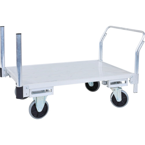ハラックス(株) 品番:FT-1250-200HJ2-HP2 HARAX フラッティ片ハンドル片パイプ仕様タイプ 特長片ハンドル片パイプ仕様です。2輪が自在、2輪が固定ですから直進性もよく方向転換も可能です。用途荷台がフラットで全面板張りですので荷物の運搬やピッキングカートに適しています。商品スペック仕様・規格組立式均等荷重(kg):350長さ(mm):1460幅(mm):930高さ(mm):