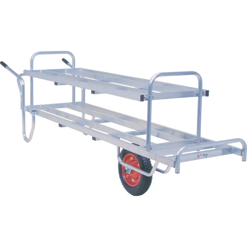 ハラックス(株) 品番:CNT-360S HARAX コン助 13×3Tエアー入りタイヤ 積載面1600~2050×535 特長花用運搬1輪車(荷台全面フラット)です。2段タイプです。アルミ製ですので軽量で、サビにくいです。用途フラコンの運搬に。商品スペック仕様・規格完成品13×3Tエアー入りタイヤ二段目棚サイズ161~53.5cm積載重量80kg均等荷重(kg):80長さ(mm):2020~
