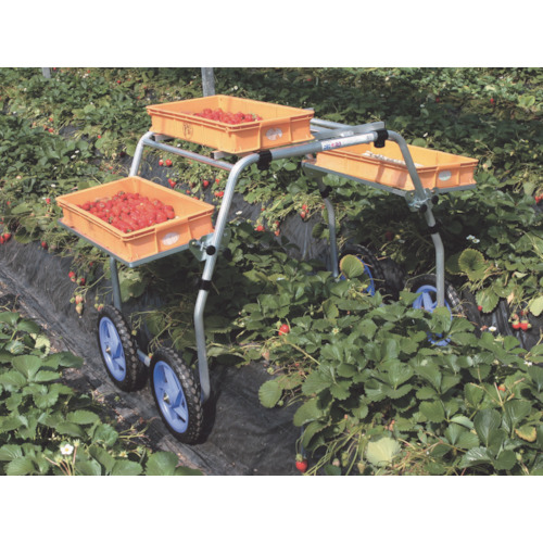 ハラックス(株) 品番:RA-612 HARAX 楽太郎 特長収穫テーブルがワンタッチで折りたたみ出来ますから、前後の移動がスムーズに行えます。タイヤ幅が無段階に調節できます。また、収穫テーブルが上下にスライドできます。用途イチゴの収穫コンテナの運搬に。商品スペック仕様・規格組立品タイヤ幅90~120cm 有効高73.5cm12インチノーパンクタイヤ積載量 荷台30kg テーブル10kg均等荷