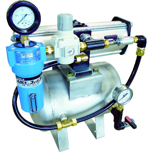 (株)フクハラ 品番:PX201-4 フクハラ パワーマックス 特長オイルフリーで無電源です。入口、出口を配管するだけで、低圧の空気を増圧し、高圧の空気を作ります。ミクロミストフィルターを標準で搭載、エア中の不純物を除くことで、シリンダの長寿命をはかっています。用途工場ラインのある一部だけで高い圧力が必要な場所に。(気密テスト・レーザー加工・エアブロー・省エネで工場全体の圧力を下げている工場)