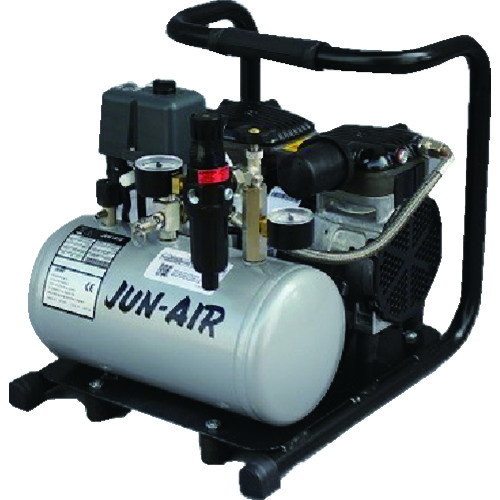 JUN-AIR社 品番:87R-4B JUN-AIR JUN‐AIR無給油式コンプレッサー87R-4B 特長小型軽量でユニークかつ機能的デザインで使いやすいコンプレッサーです。(87R-4B)キャビネットタイプで低騒音50~51dB(A)/1m、さらにキャスター付きのため移動も簡単です。(87R-4P)RoHS2・CEマーキング対応。87R-4PはUL規格(1450)にも対応しています。メンテ