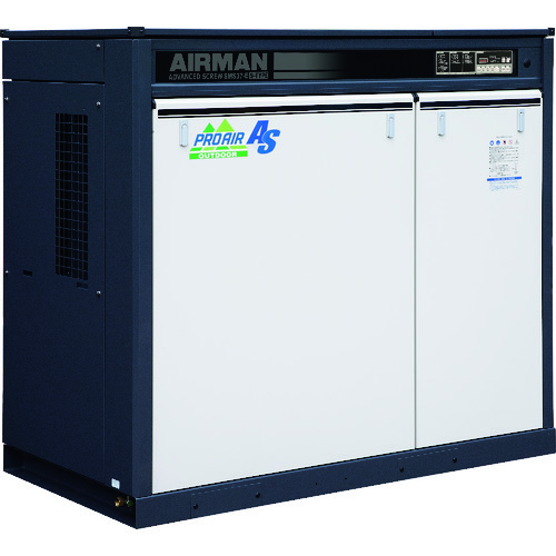 北越工業(株) 品番:SMS37ESD-6E 北越 スクリューコンプレッサ ドライヤ付 屋外仕様 37KW 60Hz 特長高効率モーター対応です。油冷式です。二位置制御+省エネ機構です。(A.C.C.S.+パージ制御+自動発停)二位置制御で吸入空気量を開(ロード)⇔閉(アンロード)の二段階で容量制御します。A.C.C.S.で消費空気量に応じてパージ開始圧力PHを自動的に変化させ、頻繁に容量制御
