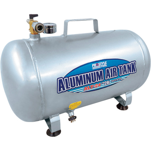 フローバル(株) 品番:ALT-24 PROSTYLE アルミエアータンク24L 特長アルミボディの採用により軽量化を実現します。ポータブルタンク、リザーブタンクとして最適です。予備タンクに最適です。用途釘打ち、ゴミ吹き飛ばし掃除のエアーガン、エアー\ガンスプレー塗装、車・自転車のタイヤ空気入れに。商品スペック仕様・規格据置時の安定を重視した4点支持タンク容量(L):24最高使用圧力(MPa
