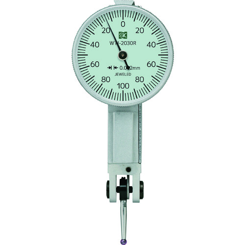 新潟精機(株) 品番:WTI-2030R SK ダイヤルインジケータ 特長ダイヤルゲージでは測れない狭い場所や深い場所の測定が簡単に行えます。用途回転筒の測定、回転体のフレ測定に。商品スペック仕様・規格メーカーコード:151925測定範囲(mm):0-0.2最小表示(mm):0.002目盛仕様:0-100-0取付軸径(mm):6/8測定力(N):0.5N以下文字盤径(mm):30測定子:ルビー