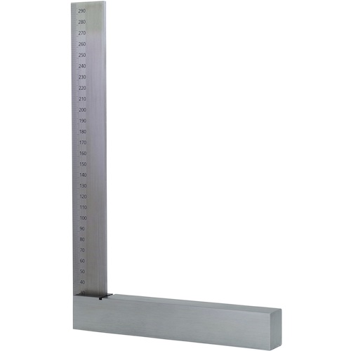 新潟精機(株) 品番:C-400 SK 目盛付台付スコヤ 400mm 特長直角度、真直度測定のマスタとして使用します。測定したまま数値が読める片面1mm通し目盛付です。ベースが厚いため、安定した測定に向いています。用途直角度測定、ケガキ作業に。商品スペック仕様・規格呼び寸法(mm):400長片全長(mm):400長片幅(mm):40長片厚(mm):5底面全長(mm):200短片幅(mm):40
