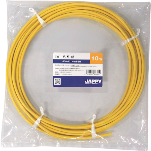 因幡電機産業(株) IV 5.5 SQ YEL 10M JP JAPPY ビニル絶縁電線