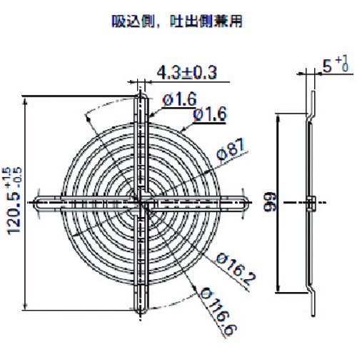 山洋電気(株) 品番:109-099H SanACE フィンガーガード (□92用、φ100用 吸込側、吐出側兼用) 特長羽根の回転部分への指などの挿入を防ぎます。用途ファンの異物の吸込み防止に。商品スペック仕様・規格表面処理:カチオン電着塗装(黒色)吸込側、吐出側兼用適合冷却ファン(AC/DC共用・外寸):□92mm材質:金属オプション種別:フィンガーガード材質軟鋼線材質量・質量単位29g使
