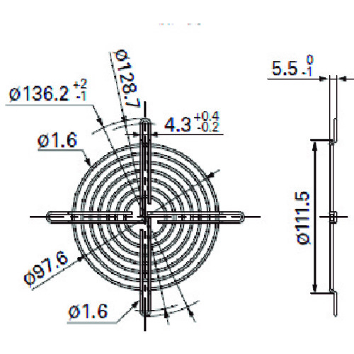 山洋電気(株) 品番:109-1104H SanACE フィンガーガード (φ150用 吸込側) 特長羽根の回転部分への指などの挿入を防ぎます。用途ファンの異物の吸込み防止に。商品スペック仕様・規格表面処理:カチオン電着塗装(黒色)吸込側用適合冷却ファン(AC/DC共用・外寸):φ150mm材質:金属オプション種別:フィンガーガード材質軟鋼線材質量・質量単位31g使用条件-注意事項冷却ファンの