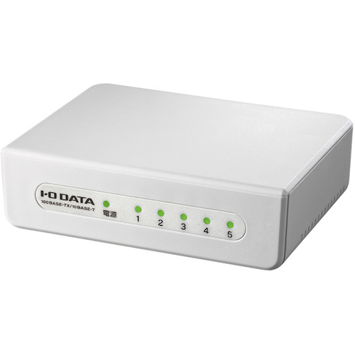 (株)アイ・オー・データ機器 品番:ETX-ESH05WC アイ・オー・データ 5ポートレイヤー2スイッチングハブ 特長省電力機能を搭載し、待機時最大約69%電力をカットすることができます。昼夜でパソコンの使用状況が大きく変わるオフィスや、時間帯によってはパソコンがほとんど使われることのない一般のご家庭などで、「省エネ」な環境を提供いたします。100BASE-TX、10BASE-Tのネットワー