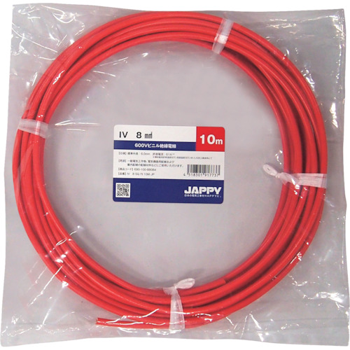 因幡電機産業(株) IV 8 SQ RED 10M JP JAPPY ビニル絶縁電線