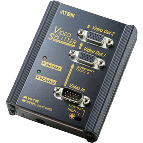 ATENジャパン(株) 品番:VS102 ATEN ビデオ分配器 VGA/1入力/2出力 特長・1系統のアナログVGA信号を2系統に分配出力できます。・解像度-最大1920×1440、DDC、DDC2、DDC2B準拠(ポート1のみ)でえす。・バンド幅-最大250MHzです。・ビデオ信号を増幅させ延長伝送可能(総延長65m)です。・モニター対応:VGASVGAXGA、マルチスキャンモニターです。