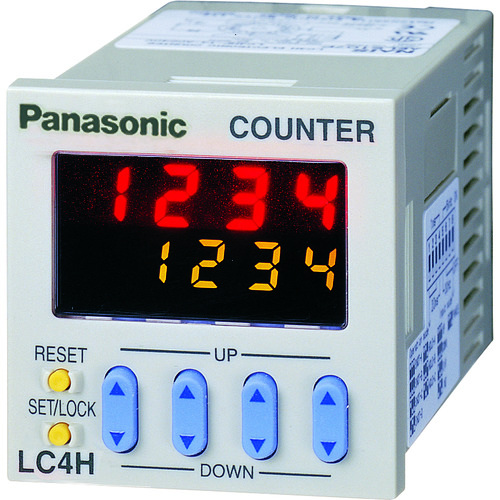 パナソニック デバイスSUNX(株) 品番:AEL5187PS デバイスSUNX 電子カウンタ LC4H 端子タイプ:ネジ締め端子 桁数:4 特長2色バックライト付LCD表示で、明るく、見やすいです。動作モードの設定は側面のディップスイッチで、設定値の設定は前面のキースイッチで、使いやすく簡単に操作できます。プリスケール機能を装備しています。高容量センサ用電源を内蔵しています。用途食品機械、自