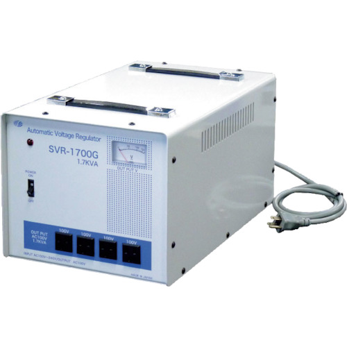 スワロー電機(株) 品番:SVR-1700G スワロー 交流定電圧電源装置 サイリスタ式 特長電圧変動に対し応答速度が速く高効率、高性能で負荷を選びません。Eタイプは入力200Vを対応、Gタイプは入力7電圧に対応です。用途電圧事情が不安定な環境で電圧を安定させるのに最適。商品スペック仕様・規格入力(V):AC100/110/120/200/220/230/240V出力:AC100V容量:1.7