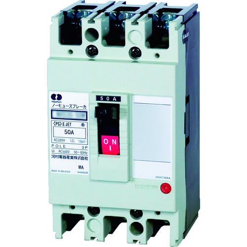 河村電器販売(株) 品番:NX 52E-15W 河村電器 分電盤用ノーヒューズブレーカ 定格15A 幅50mm 特長JIS規格C8201-2-1Annex2適合品です。用途電灯回路および動力回路用に。商品スペック仕様・規格電気用品安全法適合定格絶縁電圧:AC660V標準接続方式:線押え端子(M5)最大接続可能電線:22mm(の2乗)引外し方式:熱動電磁式定格遮断容量:AC220V/5kAAC4
