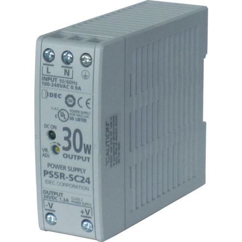 IDEC(株) 品番:PS5R-SC24 IDEC PS5R-S形スイッチングパワーサプライ(薄形DINレール取付電源) 特長ACフリー入力に加え、SS端子(フィンガープロテクション構造)を装備したワールドワイド電源です。使いやすさを追求したDINレール取り付けタイプです。直付金具の使用により、パネルなどに直接取り付け可能です。CEマーキング適用品(LVD、EMCD)、UL認証品、EN規格適合