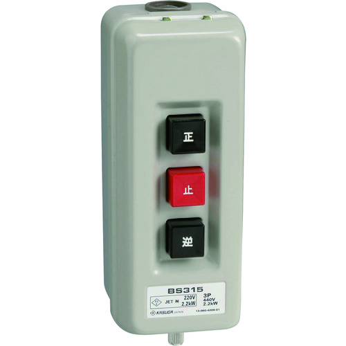春日電機(株) 品番:BS3153 春日電機 動力用開閉器 BS3153 特長鉄ケースで屋内の機械や壁に取り付けて使用するタイプです。電動機の正転・逆転の切り替え運転ができます。電気用品安全法適合品です。用途動力用押ボタンスイッチ正転、逆転。商品スペック仕様・規格可逆タイプボタン文字:正、止、逆最大適用電動機容量:三相200/220V-2.2kW長さ(mm):64幅(mm):164高さ(mm)