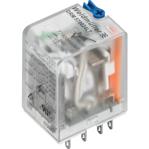 日本ワイドミュラー(株) 7760056069 ワイドミュラー リレー DRMシリーズ DC24V駆動 10A C接点 極数2 LED、テストボタン付き