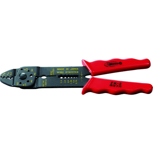 (株)ロブテックス 品番:FK3 エビ 電装圧着工具(裸端子用/P.B形スリーブ用) 特長裸圧着端子・P.Bスリーブの圧着、ボルト・電線の切断、電線の被覆むきがこれ1丁でできます。用途自動車整備、配線などの端子圧着に。裸圧着端子・P.Bスリーブの圧着、ボルト・電線の切断、電線の被覆むき商品スペック仕様・規格全長(mm):220圧着端子((MM2))裸端子用:1.25、2、5.5グリップ色:赤材
