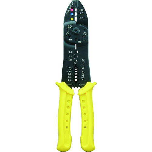 ジェフコム(株) 品番:DF-502 デンサン 圧着板ペンチ 絶縁端子・オープンバレル用 特長圧着・ネジ切断・皮むき・カッターと、1台で4役の商品です。用途絶縁端子・オープンバレル用圧着に。カッター。ネジ切断に。ワイヤーストリッパー.。商品スペック仕様・規格絶縁端子:1.25、2.0、5.5mm2オープンバレル:1.25、2.0、5.5mm2全長(mm):230材質-質量・質量単位270g使用
