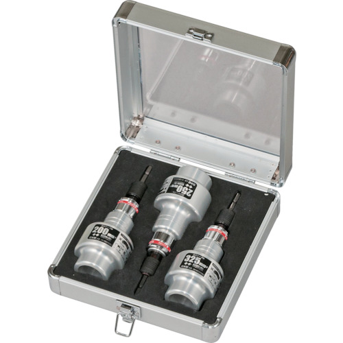 (株)TJMデザイン 品番:DK-MS3LAJSET タジマ CV線ストリッパー ムキソケ アジャスター式200・250・325セット 特長充電ドライバーにセットしてCVケーブルを差し込み回転させるだけで被覆が剥けます。誰でも簡単、しかも精度は一定です。剥き幅が調整できるアジャスター式で、圧着端子の幅を任意に設定が可能です。ラチェットドライバーハンドルに装着し手回しでも使用可能です。硬いCTV