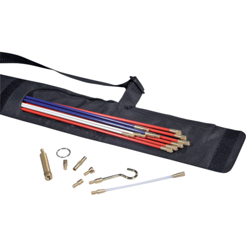 ヘラマンタイトン(株) 品番:CS2-SD ヘラマンタイトン ケーブルスカウト+スタンダードセット 特長ジョイントタイプの万能通線ロッドで、機能を向上させ、さらに使いやすくなった継ぎ足し式の通線用工具です。リールタイプと比較し直進性が良く、短時間で目的位置まで通線ができます。配線ダクト等、通線に障害物のある場合でもスムーズにケーブルを通すことが可能です。ロッドには、特殊加工を施しているため、曲