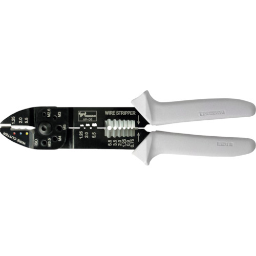 (株)ツノダ 品番:AP-06 TTC 電工万能ペンチ AP-06(絶縁端子・オープンバレル端子両用) 特長これ1本で電気配線に必要な5つの機能(ワイヤーカッター、絶縁端子圧着、ボルト・ネジの切断、オープンバレル端子圧着、ワイヤーストリッパー)を装備しています。手に優しいエラストマーグリップを採用しています。用途自動車や電子機器などの配線の各種圧着端子の圧着、小ネジの切断に。商品スペック仕様・