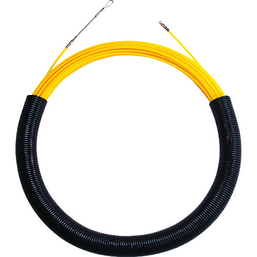 ジェフコム(株) 品番:SYX-6550 デンサン ウルトライエローエース 50m 特長ワイヤーヘッド&横穴先端金具のダブルヘッド採用で、索引する電線に合わせて結線の選択が可能です。単線ツイストタイプで剛直性抜群です。押し込み作業中に押したわみが少なく、ツイスト形状のため点接触で摩擦によるロスを減少します。先端まで力が加わり長尺曲がりもよく通ります。両先端の金具は取替可能でワイヤーの消耗に対応