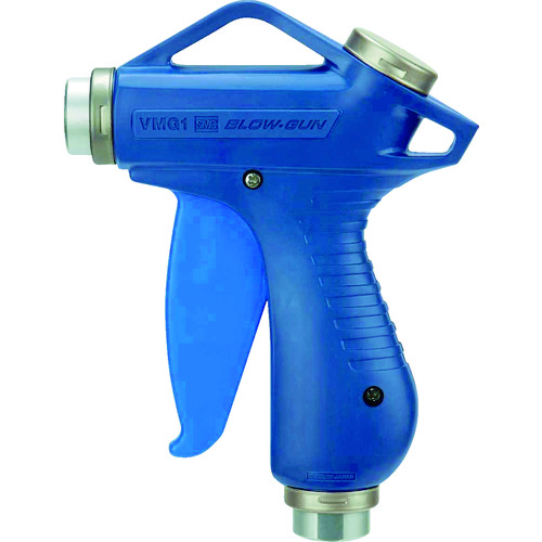SMC(株) 品番:VMG11BU-02 SMC ブローガン 特長供給圧力の影響を受けない一定の操作力です。耐衝撃性樹脂を採用しています。分別できて環境にやさしいです。用途エアブローに。商品スペック仕様・規格使用圧力範囲:0~1.0MPa有効断面積:30mm(の2乗)(SMCノズルを外した状態)ノズル取付口:Rc1/4エア取付口:Rc1/4全長(mm):117.5色:ダークブルー材質-質量・質