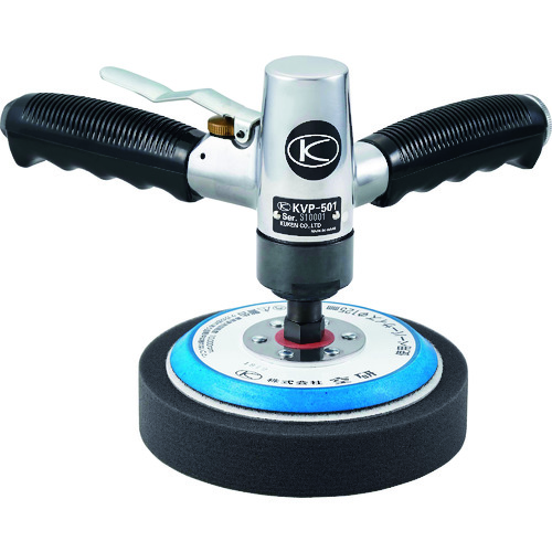 (株)空研 品番:KVP-501 空研 バーチカルポリッシャー(セット) 特長手元で容易にエア調整が可能な無段階式パワーレギュレータを内蔵しています。操作性に優れたV型グリップです。冬季の作業でも冷たくなりにくいラバーグリップ仕様です。用途バフを用いての塗装面のポリッシング作業に。サンディングペーパーを用いての旧塗膜剥がし作業に。配電盤などの研磨作業に。システムキッチンなどのステンレス磨きに。