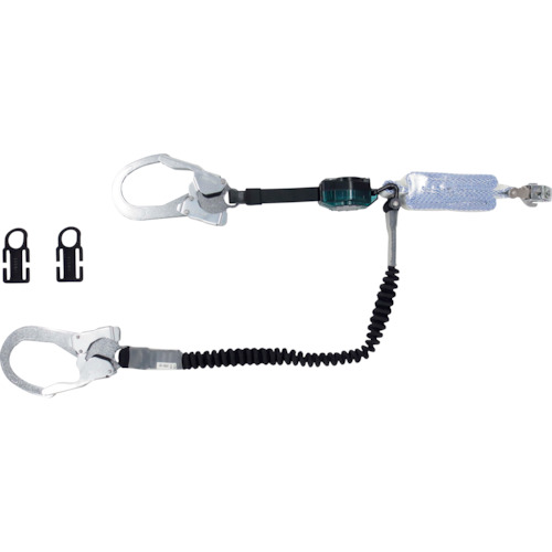 ミドリ安全(株) 品番:MHLYS-RCRNEX-56DJMR-130-T1-1.6 ミドリ安全 常時巻取り式と伸縮式の2丁掛けランヤード 130kg以下 伸縮式1.6 特長常時巻取式と伸縮式の2丁掛けランヤードです。伸縮式ランヤードの長さは約1.6mです。ストラップには常に巻取テンションが掛かっており、ロック機構と相まって落下距離を最短に抑えられる仕様のランヤードです。使わないときは短く縮ん