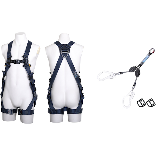 藤井電工(株) 品番:TH520H2CR93SVOTBLBKM2R23SGBX ツヨロン ZERO-Gハーネス Mサイズ SG コルトリトラ2本式ランヤード付 特長腿水平タイプ装着ストレスZEROフリージョイント機構により、屈伸作業などにツッパリ感を感じない。しなやかなシートベルト調の採用により装着性が向上。ベルトの緩みZERO固定機能付ベルト通しの採用により、継続使用時におけるベルトの緩みを