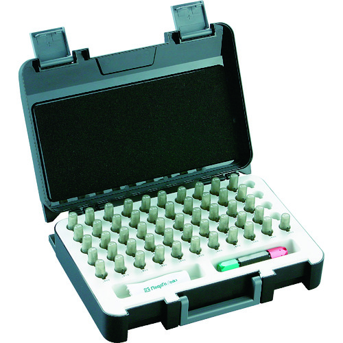 新潟精機(株) 品番:AA-0A SK ピンゲージセット 0.20~0.50(0.01mmステップ計31本) 特長一般的なピンゲージセットです。全品経年変化防止のサブゼロ処理済みです。真円になっているため、あらゆる場面で使用可能です。アルミピンバイス付です。用途穴径の検査。金型用部品として。芯ブレ検査用に。R測定に。商品スペック仕様・規格径精度:±0.8µm硬度:65