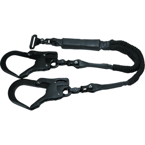 (株)基陽 品番:WLJTGK-LL KH 2丁掛けじゃばら式駕王ランヤード 剣フック自在環-D環 15-15 黒 特長伸縮率が2倍のランヤードです。ツインタイプで身体側の取り付け部分は一か所ですが2丁掛けになります。ショックアブソーバーを内蔵しています。自在環付きなので、取り付け部分が一か所でも2本のロープが絡みません。主の規格で副の長さなので掛け替えの手間が要りません。架け替えが不要なので