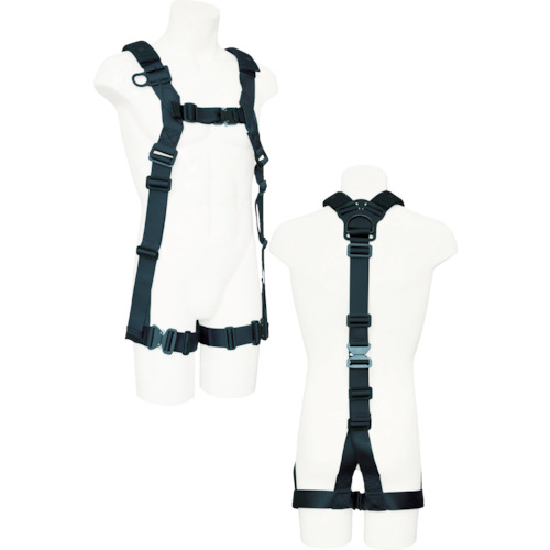 サンコー(株) 品番:MTBS-10A タイタン 猿とびハーネス 特長胸部と腿部の3カ所に着脱の際に便利な軽量アルミ製ワンタッチバックルを装備しています。腰道具の重みを強力に保持するバックサスペンダーを装備しています。背面のベルトをY字型にすることで圧倒的な道具吊りスペースを実現しました。ハーネスを着けたままで道具を装着した胴ベルトの着脱が可能です。道具の重みや激しい動きでもズレないようしっか