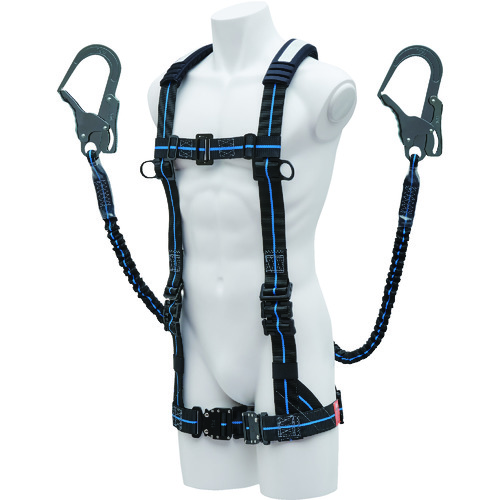 (株)基陽 品番:YPNBLSPWB KH ハーネスセット Y型 黒/青ライン W1SPWB-17 特長フルハーネスと2丁掛けランヤードのセットです。ハーネスはY型です。じゃばらランヤードを採用しています。用途2m以上の高所作業者。商品スペック仕様・規格厚生労働省「墜落制止用器具の規格」適合品JIST8165:2018 墜落制止用器具 適合一本吊り専用ランヤード種別:タイプ1胴ベルトなしタイプ