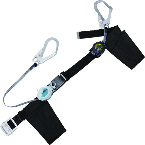 藤井電工(株) 品番:TRL-2-593-SRBT-BLK-BP ツヨロン ツインランヤード安全帯 黒色 軽量型 特長ツインランヤード安全帯です。収納が簡単で移動時ランヤードが引っ掛かることが少ないです。2Way巻き取り器は自動巻き取りで、中途停止・ロック機能を備えております。安全帯のフックを掛け替える時の無胴綱状態をなくし墜落災害を防ぎます。副ランヤードは主ランヤードのフックが掛からないよう