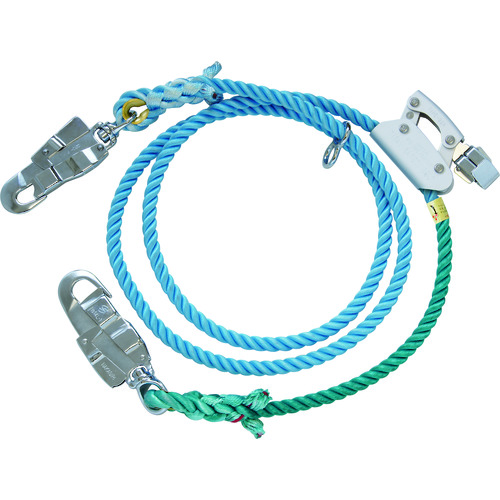 ジェフコム(株) 品番:DB-200FCS-MT デンサン 柱上安全帯用セフティロープ (軽量・無墜落タイプ) 特長U字つり作業中の墜落を阻止する無墜落タイプです。軽量金具採用で作業が楽です。厚生労働省「安全帯の規格」適合品です。1本つり・U字つり共用ランヤード柱上安全帯用ベルトと組合わせて、1本つり・U字つりの高所作業ができます。送・配電線路、通信線路、建設現場、造船所などの高所作業に最適で