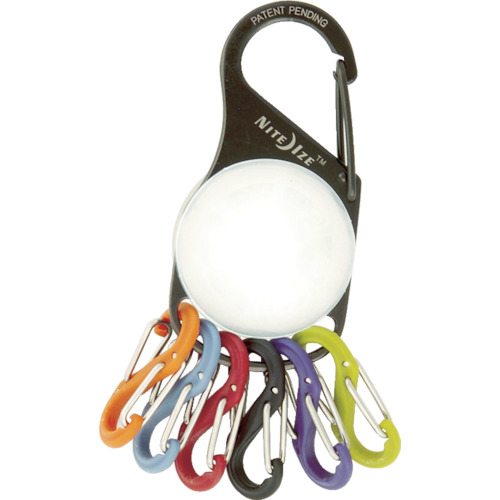 (株)シームーン 品番:NI01526 NiteIze 【売切り廃番】キーリット 特長実用的なキーラックと便利なLEDライトが合体したアイテムです。裏側を押して点灯させれば手元が明るくカギを探しやすくなります。商品スペック仕様・規格電源(V):CR2016×2個連続点灯時間:20時間エスビナー(S字カラビナ)6個付色:本体 ブラック、カラビナ 6色幅(mm):33長さ(mm):90奥行(mm)