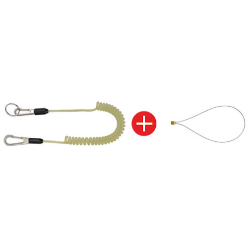トップ工業(株) 品番:SFC-413LG-CP TOP コンパクトセーフティコードHiluminou キャンペーン品 特長工具接続ワイヤをセットにした特別キャンペーン品です。暗闇で光る蓄光タイプです。ステンレスワイヤーに組み込んだ蓄光材がクリアに輝きます。商品スペック仕様・規格使用最大荷重(kg):1二重リング付安全強度:約30kgf自然長(mm):380最大長さ(mm):1300コード径(