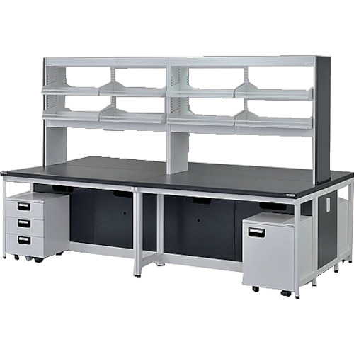 アズワン(株) 品番:3-2033-01 AS 中央実験台 AA-1815K-RAC 特長ラック式試薬棚は棚板を収納物にあわせて着脱や取り付け位置を調整することができます。用途天板:表面材/ケミサーフ、エッジ/PP(ポリプロピレン)45mm仕上げ本体:スチール(粉体塗装)、脚部/レベルアジャスター付き試薬棚:スチール(粉体塗装)(落下防止パイプ付き)移動式ユニット:OSM-3L×2台・OSM-