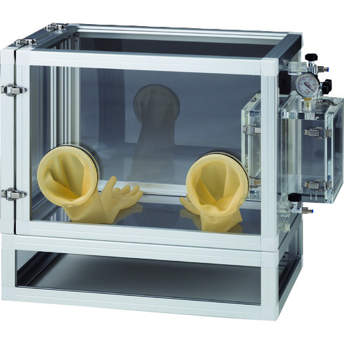 (株)サンプラテック 品番:27894 サンプラ グローブボックス(アルミフレーム式)パスボックス付 ALGB-SUS700型 特長本体部分にアルミフレーム枠を使用した軽量な透明アクリル製グローブボックスです。底板はSUS製なので、重量ある装置や機器などを入れてご使用できます。減圧可能なパスボックスが標準でついていますので、より安定した状態での物の出し入れができ、スピーディーな作業が行えます。