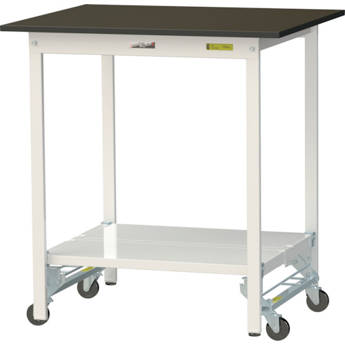 山金工業(株) SLMUH-975TT-BRW ヤマテック ワークテーブルLABシリーズ ワンタッチ移動タイプH950mm 全面棚板付 指紋レスメラミン天板 W900×D750
