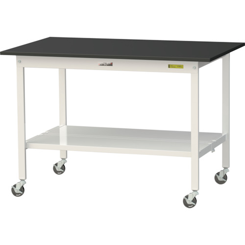 山金工業(株) SLKC-1275TT-BKW ヤマテック ワークテーブルLABシリーズ 移動式H825mm 全面棚板付 ケミテクト天板 W1200×D750