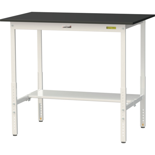 山金工業(株) SLKAH-1275T-BKW ヤマテック ワークテーブルLABシリーズ 高さ調整タイプH900~1200mm 半面棚板付 ケミテクト天板 W1200×D750