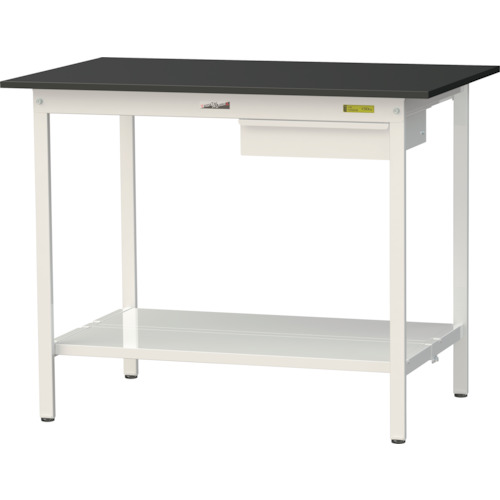 山金工業(株) SLKH-1275UTT-BKW ヤマテック ワークテーブルLABシリーズ 固定式H950mm キャビネット・全面棚板付 ケミテクト天板 W1200×D750